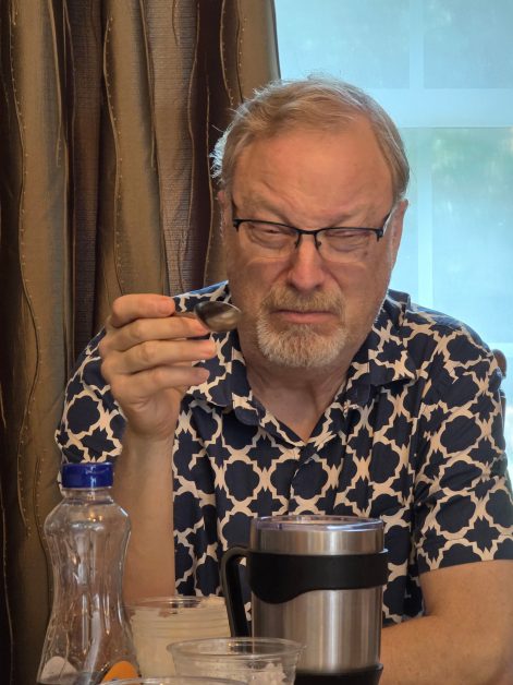 Part of our party entertainment was having Steve taste yogurt with honey in it. (He HATES yogurt.)