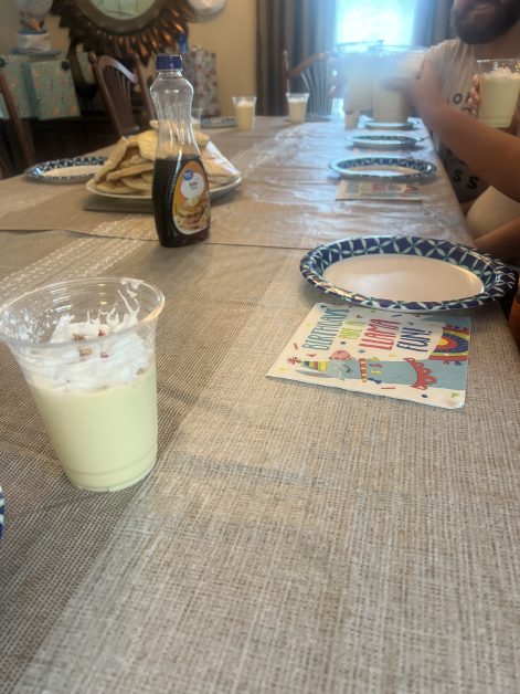 Meagan asked the boys what they wanted for their birthday lunch; one said pizza and the other said pancakes. And so that’s what we had! Meagan has a trick where she adds cottage cheese to the pancake batter, which tastes great and adds more protein. Win-win.