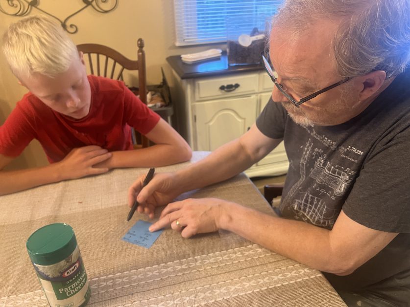 Our family has always kidded Steve that if anyone asks that question, they should watch out because he loves to answer it! He even got out a Post-it to make his explanation clearer. Noah listened intently and learned a little something in the process.