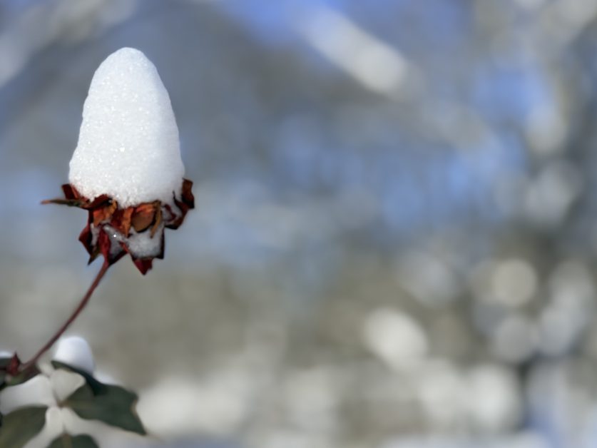 I was inspired by the beauty on display in the storm’s frigid aftermath; I especially loved that the slumbering roses were wearing tiny snow hats.