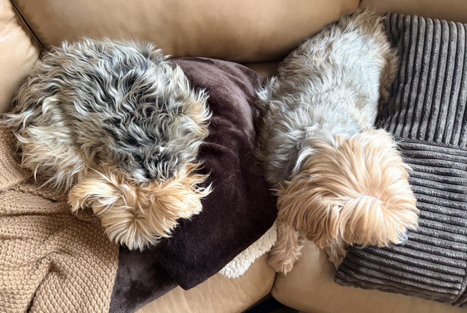Then they tucked in on the couch for a snowy day nap. It’s impossible to be stressed when looking at two snoozing balls of fur.