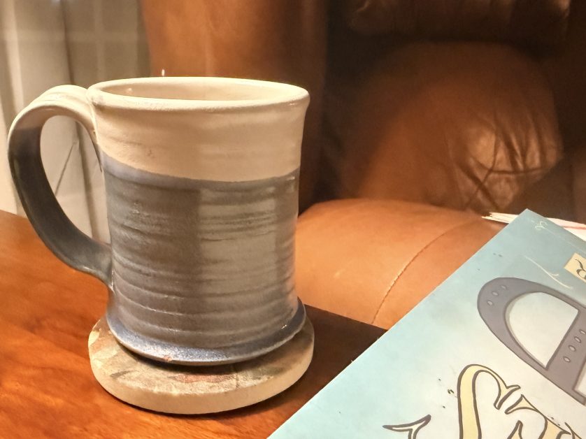 When I get up in the morning, my arthritic back hurts so badly; the only thing that helps it is when I sit in the recliner. I make my tea as quickly as I can and then grab my mug and do a comedic shuffle/run through the living room so I can make it to the recliner as quickly as possible.