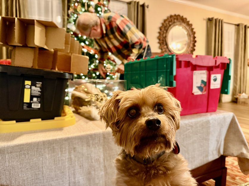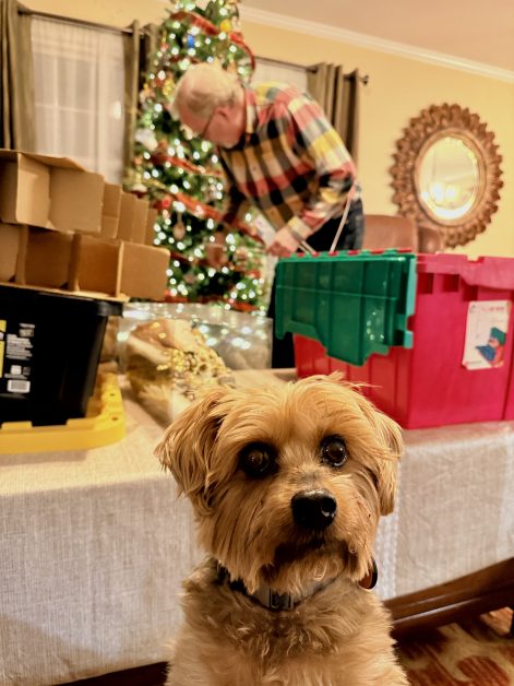 Your tree is beautiful! And I’m glad Tinker stayed to experience the cookie beeping with Amy accompanying. He is very cute in the pics. He and Belle are generally adorable!