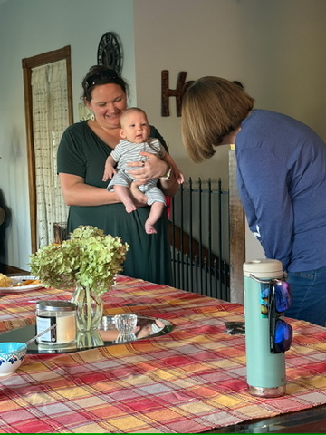 Meeting my great-nephew, Gideon, son of Ruth’s daughter, Hannah. (Photo by Carol.)