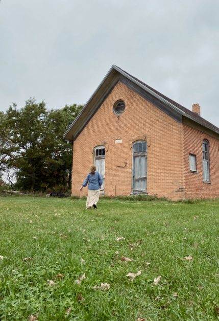I came across this photo of my sister Ruth lately.  I love everything about it–rural Wisconsin, a one-room schoolhouse, and a beloved sister in the frame.