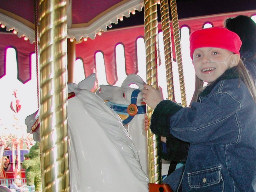 We passed a milestone last week–23 years since Sarah’s bone marrow transplant. (This was her hat/wig combo after chemo and just before the BMT.)  She always managed to have fun, regardless of what her life held.