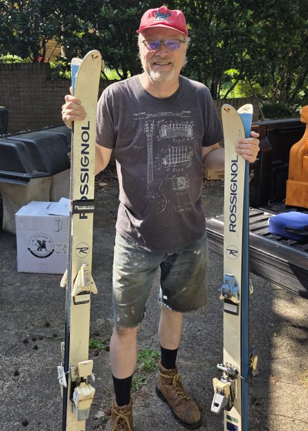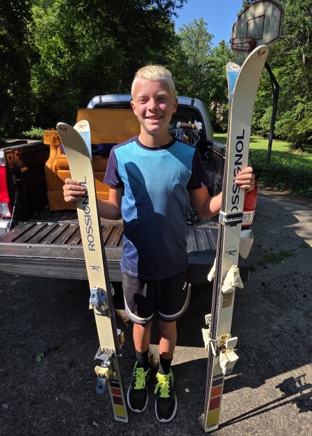 Steve and Noah said goodbye to the worn-out snow skis that Ken and Vernie had skied with since 1974.
