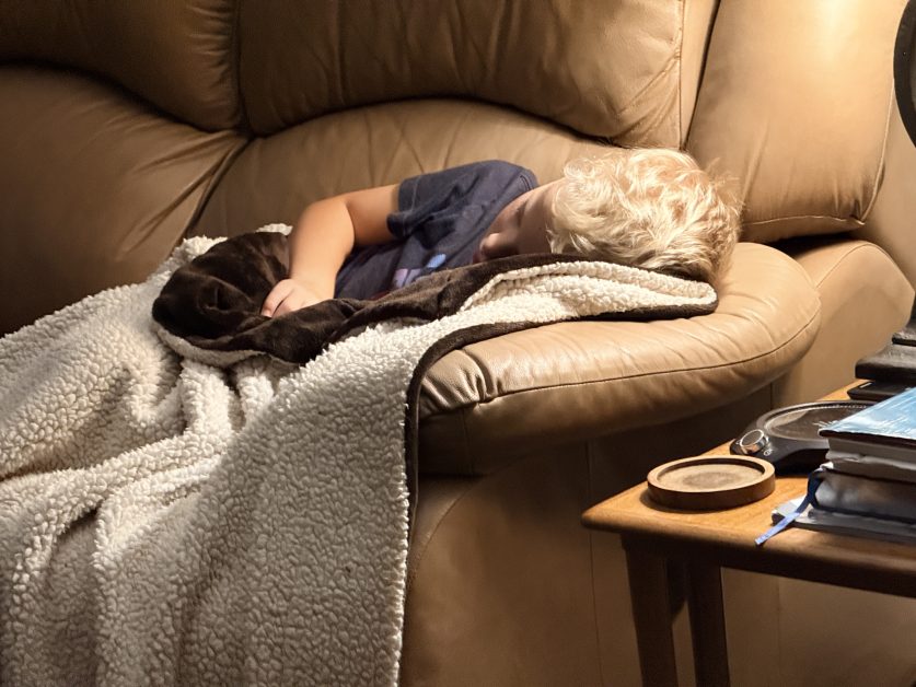 This was the sight that greeted me Saturday morning. Grayson had gotten out of bed early and carefully tucked himself back in on the couch without waking any of us.  No wonder he’s one of my favorite grandsons!