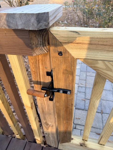 On the deck gates,  it wasn’t readily apparent where to push or pull, and so Steve got the idea of putting a knob on each side of the gate to make it clearer.
