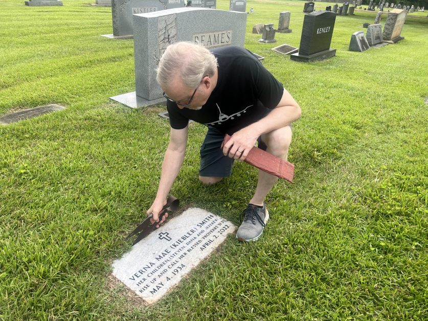 Steve invited me to go with him on a brief but important outing. The cemetery where his parents are buried is just a short distance from our house, and he wanted to drive over and trim the grass around their gravestones and remember his dad on Father’s Day.